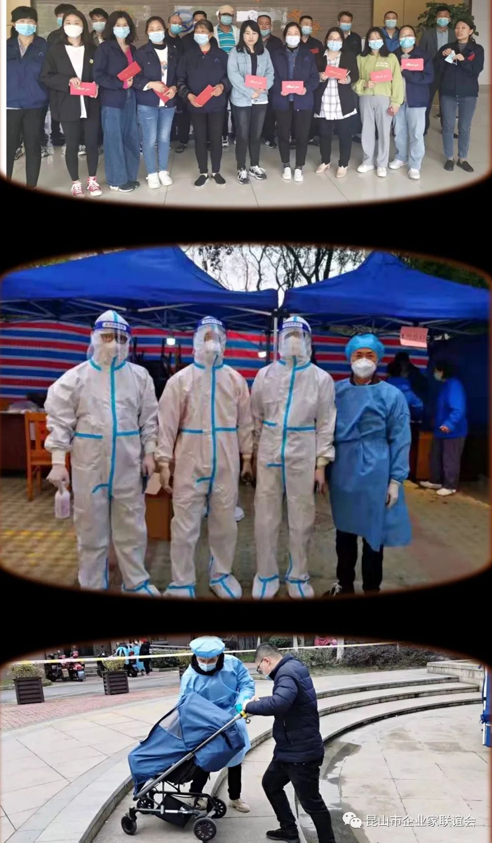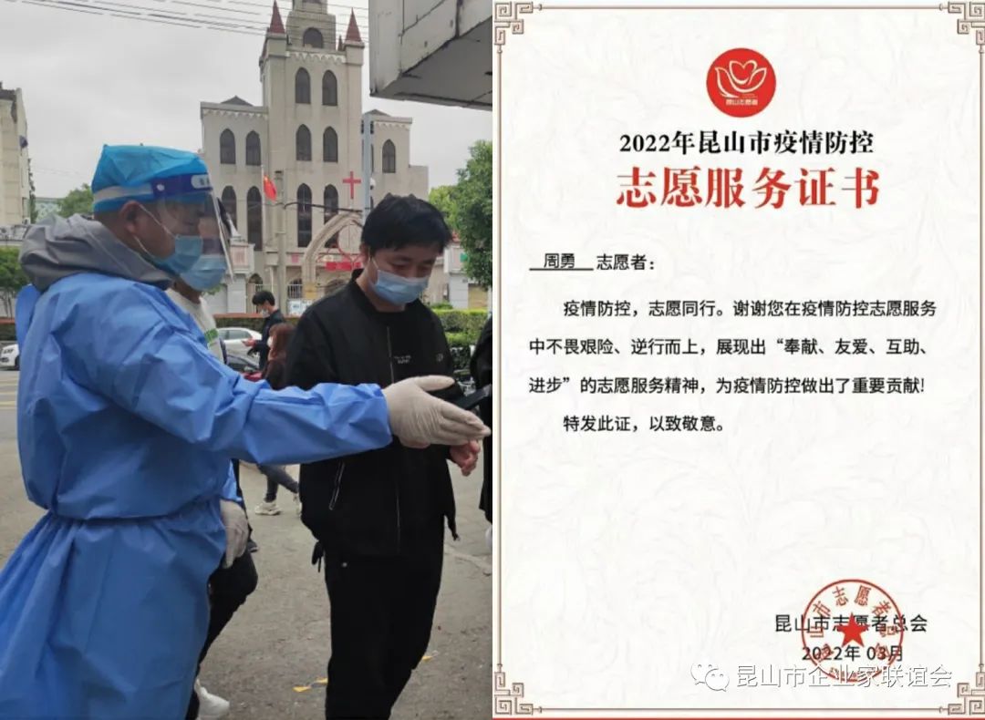 本轮疫情发生以来 联谊会各企业家会员们 勇于担当,平凡而伟大 爱心捐赠、奋战一线 汇聚起抗击疫情的强大力量 爱心捐赠同战疫 4月抗击疫情关键时刻,昆山陆新新材料科技有限公司、华辰精密装备(昆山)股份有限公司,分别向周市镇捐赠30万元、50万元爱心款,定向用于疫情防控。“表示作为本地企业,有责任和义务为疫情防控贡献一份力量。爱心接力同战”疫“,企业家会员纷纷捐款捐物,展现社会责任与担当,形成了群防群治、联防联控的强大合力。 陆静亚(联谊会理事) ▲陆新新材料捐赠30万定向用于疫情防控 曹宇中(联谊会理事) 华辰精密装备(昆山)股份有限公司爱心捐赠 ▲华辰精密捐赠50万定向用于疫情防控 志愿抗疫在行动 王银木(联谊会理事) 苏州优矿塑新材料股份有限公司先后5次组织团队人员奔赴疫情防控一线,就地转为志愿者,配合防疫工作人员工作,期间为同在一线的抗疫人员送上热腾腾的咖啡,齐心协力守护昆山。 王飞(联谊会会员) 郑敏、董力(联谊会会员) 2022年2月19 日、2月22日、3月22日若宇上下积极响应抗疫号召,前后共计派出89人冲锋一线,大家不畏寒冷,奔赴锦和社区舜江碧水豪园南区、北区和森隆满园抗疫前沿。4月停工停产期间,共计10余名员工在自己所在小区做起了志愿者,争取早日打赢抗疫仗,早日回归正常生活。 周勇(联谊会会员) 疫情不退,我不退!疫情暴发以来联谊会会员周勇志愿支援一线,坚守自己的抗疫岗位,奉献自己的力量。始终相信政府,相信众志成城的力量,团结一心,听从指挥,共同抗疫。坚信,明天会更好! 感恩企业家会员们 感恩志愿者们 防控成果来之不易 ★ 昆山市企业家联谊会以学习、协作、共赢、超越为宗旨。遵守法律、法规和国家政策,遵守社会道德风尚,以会员及其所有企业的需求为目标,搭建交流合作平台,加强各会员之间、会员与政府部门之间和会员企业与高校之间的沟通交流,实现资源共享、优势互补、共同发展,推动企业转型升级为昆山经济发展做出新贡献。 ·温馨提示· 欢迎社会各界优质企业家加入 昆山市企业家联谊会 扫码申请入会一起交流探讨吧 END